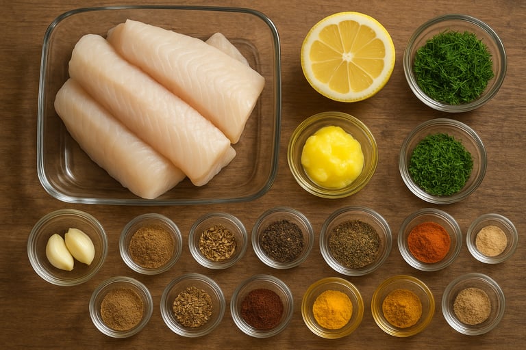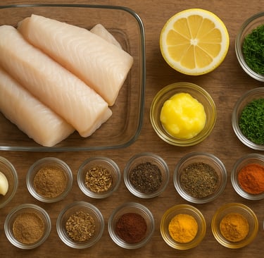 A fragrant, sattvic, digestion-supporting fish dish infused with aromatic herbs and globally inspired Ayurvedic spices. This dish is light, digestive, sattvic, aromatic, and beautifully balanced for Pitta and Kapha, while still nourishing and grounding for Vata when cooked in ghee.
