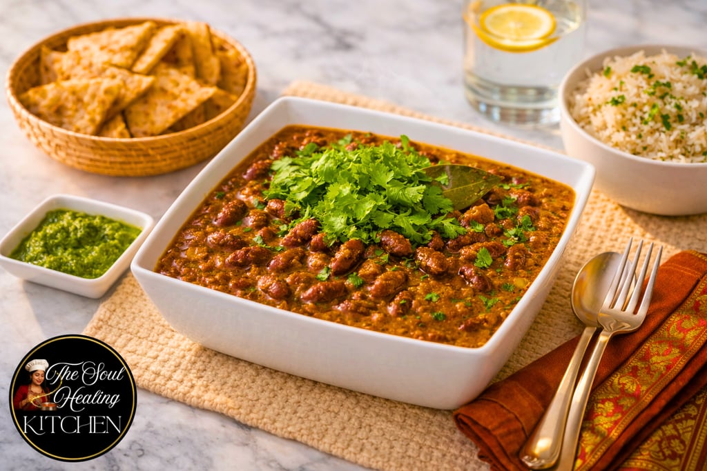This dish is warming, grounding, deeply digestible, and ideal for cool seasons or sluggish Agni. Rajma (red kidney beans) can be heavy, but with the correct spices and preparation, they become easy to digest, nourishing to rasa + rakta dhātu, and supportive to Vata and Kapha when used properly.