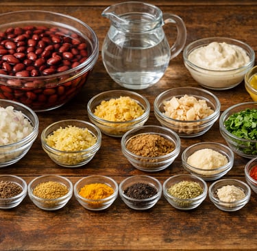 Substitute: Pinto beans, adzuki beans (lighter)Water – 3–4 cups for cooking + more as needed