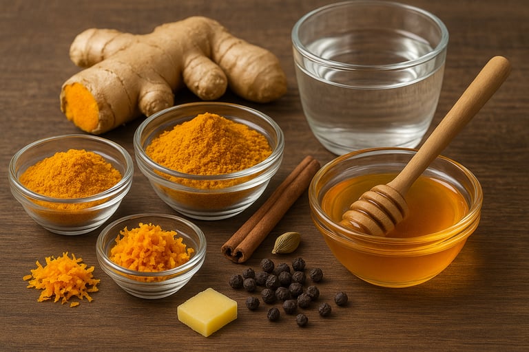 This allows the active compounds—curcumin, gingerols, shogaols—to fully release.Turn off the heat and let the mixture rest for 2–3 minutes.